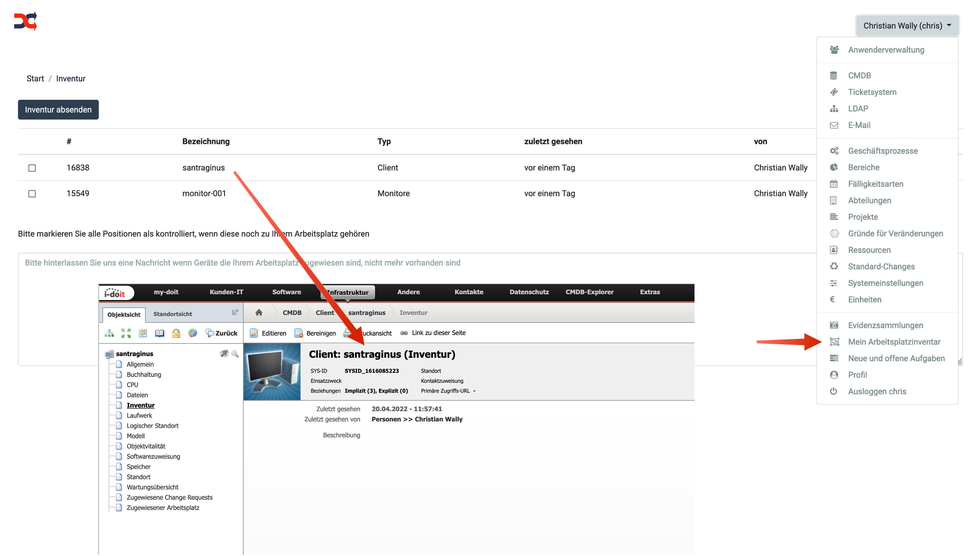 Wann und wer diese Geräte zuletzt als gesehen markiert hat, wird in i-doit in der Kategorie Inventur gespeichert.